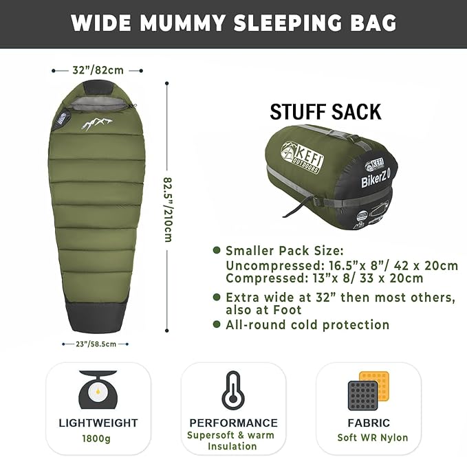• 🌟 RUGGED FLEECE-LINED FOOT MUMMY BAG Stay cozy with a warm, fleece-lined Foot region mummy sleeping bag designed to keep you comfortable in harsh winter conditions. Perfect for outdoor adventures, providing full body warmth.