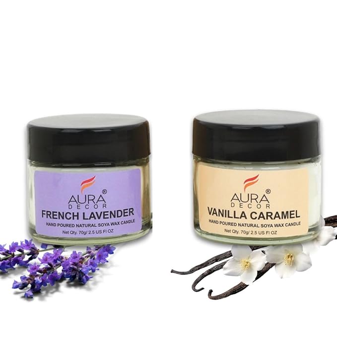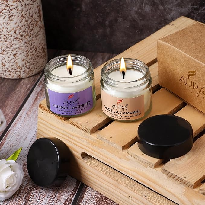AuraDecor Scented Soy Wax Jar Candle – Long-Lasting Aromatherapy Candles (French Lavender + Vanilla Caramel), Perfect Gift for Home & Office