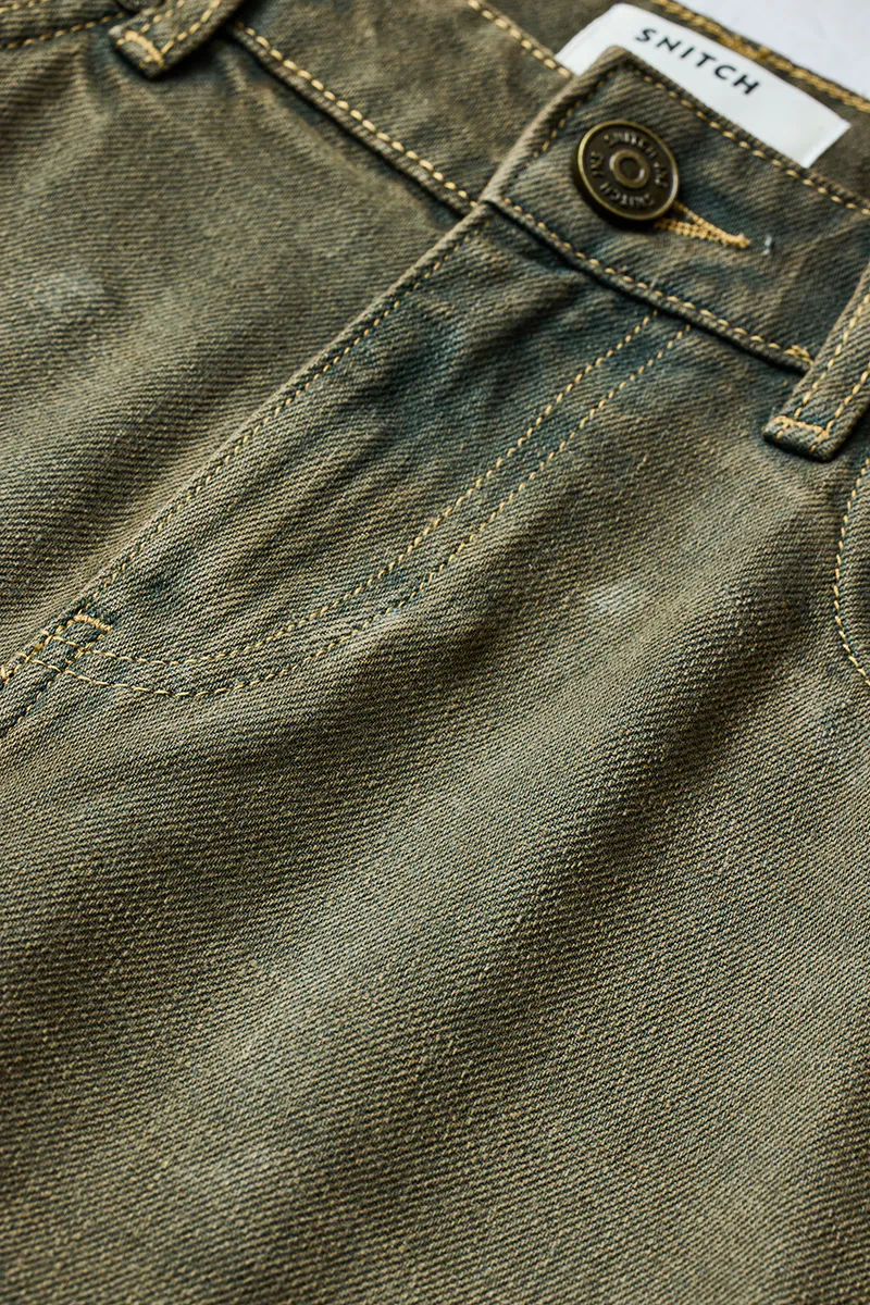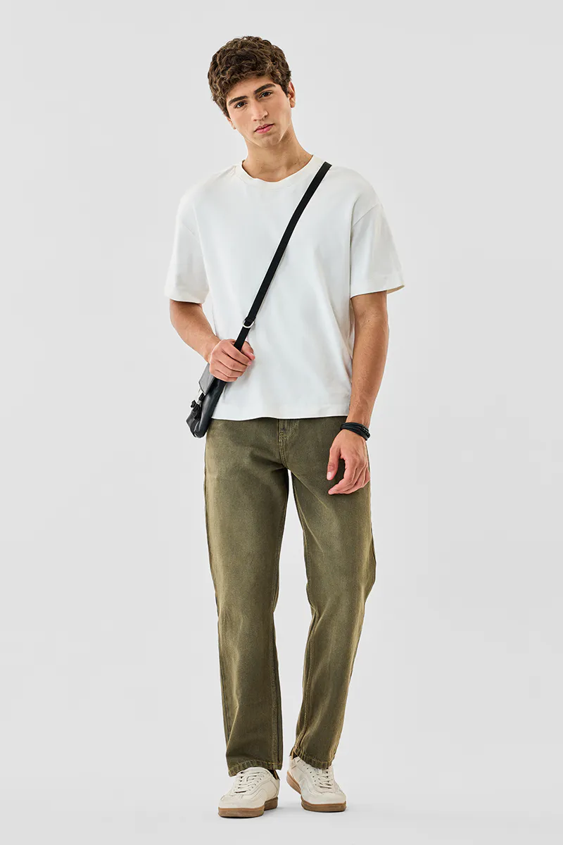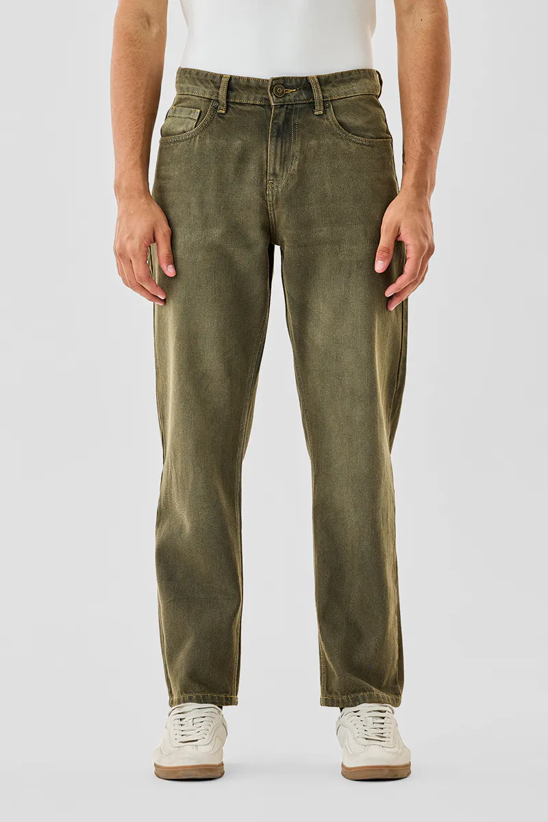 Crafted from 71% Cotton and 29% Polyester, these washed olive jeans offer a baggy fit for ultimate comfort and style. Perfect for casual outings, they blend durability with modern aesthetics.