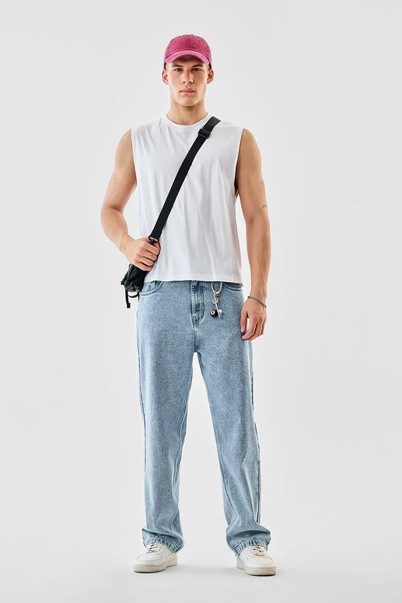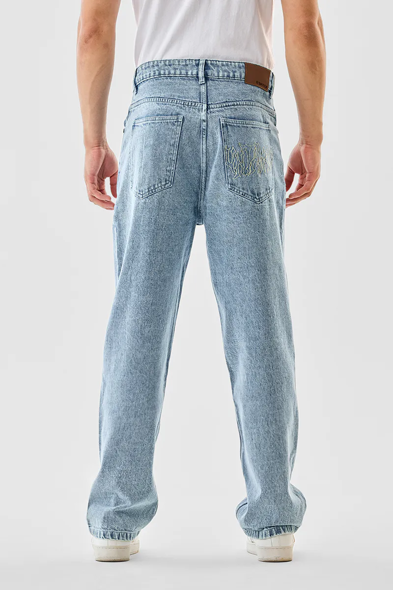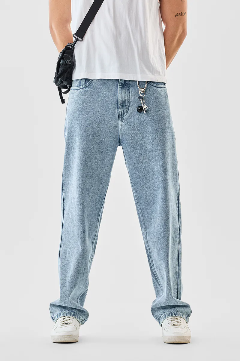 Washed denim jeans crafted from 100% cotton for ultimate comfort and durability. Featuring a baggy fit and elastic hem, these jeans offer a relaxed yet stylish vibe for everyday wear.