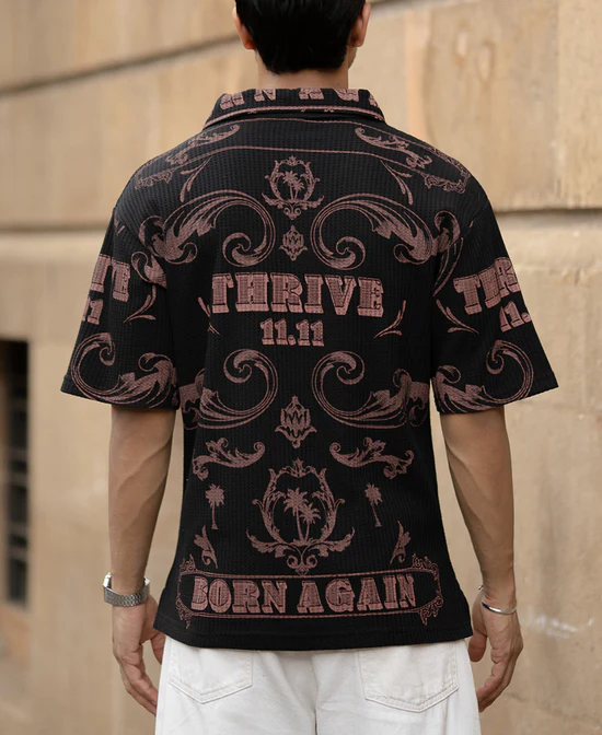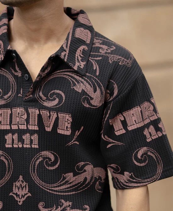 Strike the perfect balance between streetwear and smart with this black oversized printed T-shirt for men from India Store Mart. Made from a 50% cotton, 50% polyester blend, it delivers comfort with a structured shape. The tonal bold print adds edge without stiffness, making it ideal for casual weekends and off-duty styling.