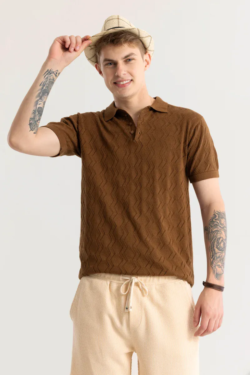 Brown Textured Slim Fit Polo T-Shirt for Men – Cotton Half Sleeve Casual Wear | India Store Mart