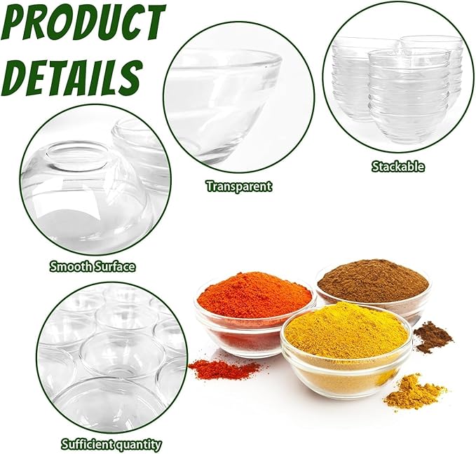 Organize, serve, and cook with ease using the CASAQUA Mini Glass Bowls (Pack of 12). Perfect for dipping sauces, soy sauce, condiments, snacks, and mis en place prep, these stackable mini bowls are durable, transparent, and space-saving – ideal for everyday kitchen and dining use.