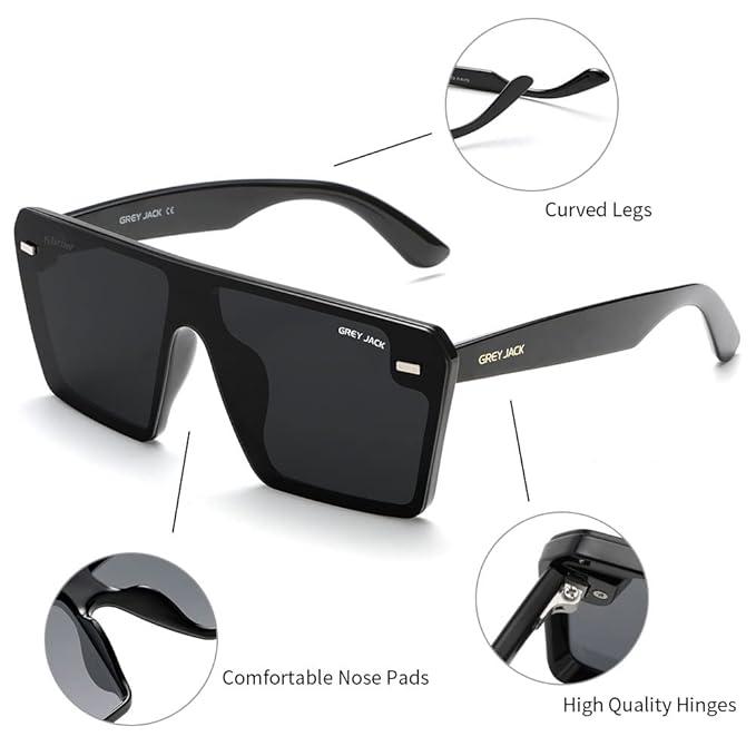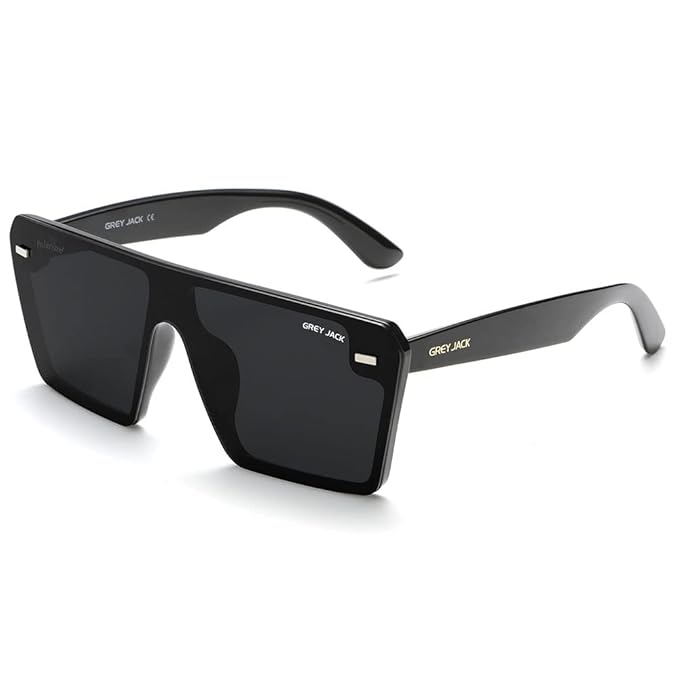 Grey Jack Square TR90 Polarized Sunglasses feature a modern one-piece lens and flat top design. Lightweight, durable, and unisex, they provide clear vision and UV protection for men and women.