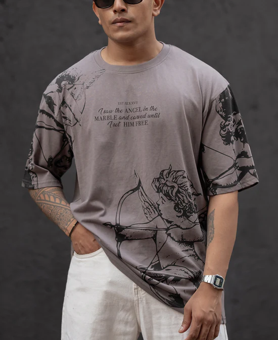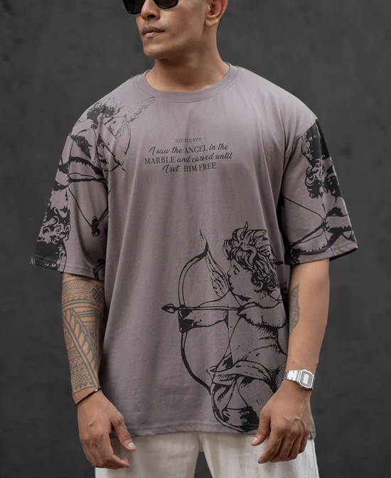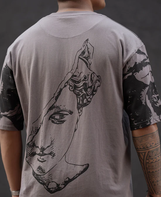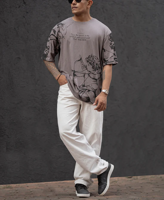 Grey Oversized Printed T-Shirt for Men – Cotton Blend Casual Streetwear | India Store Mart