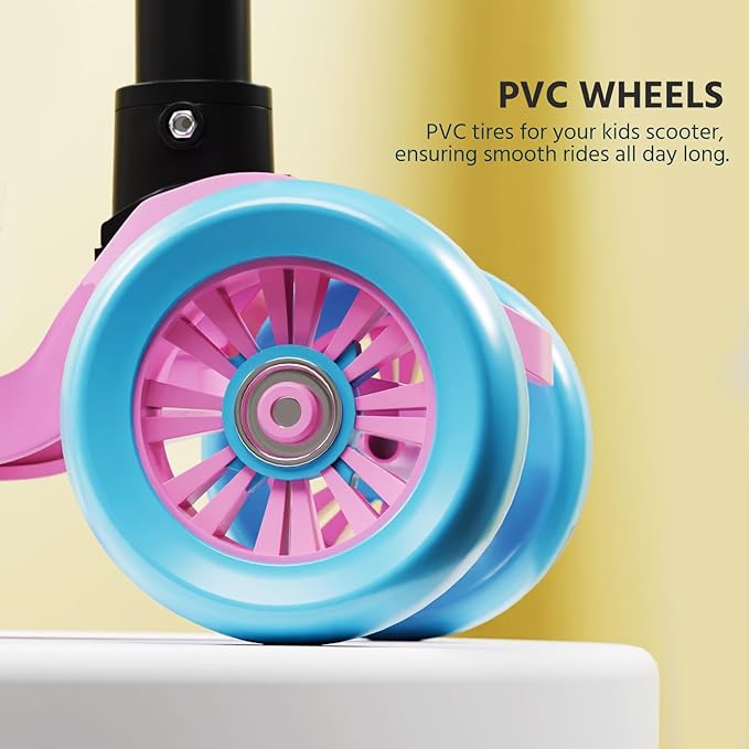 - 3 PVC Wheels: The kick scooter features three PVC wheels, enabling children to smoothly navigate even on rough surfaces.