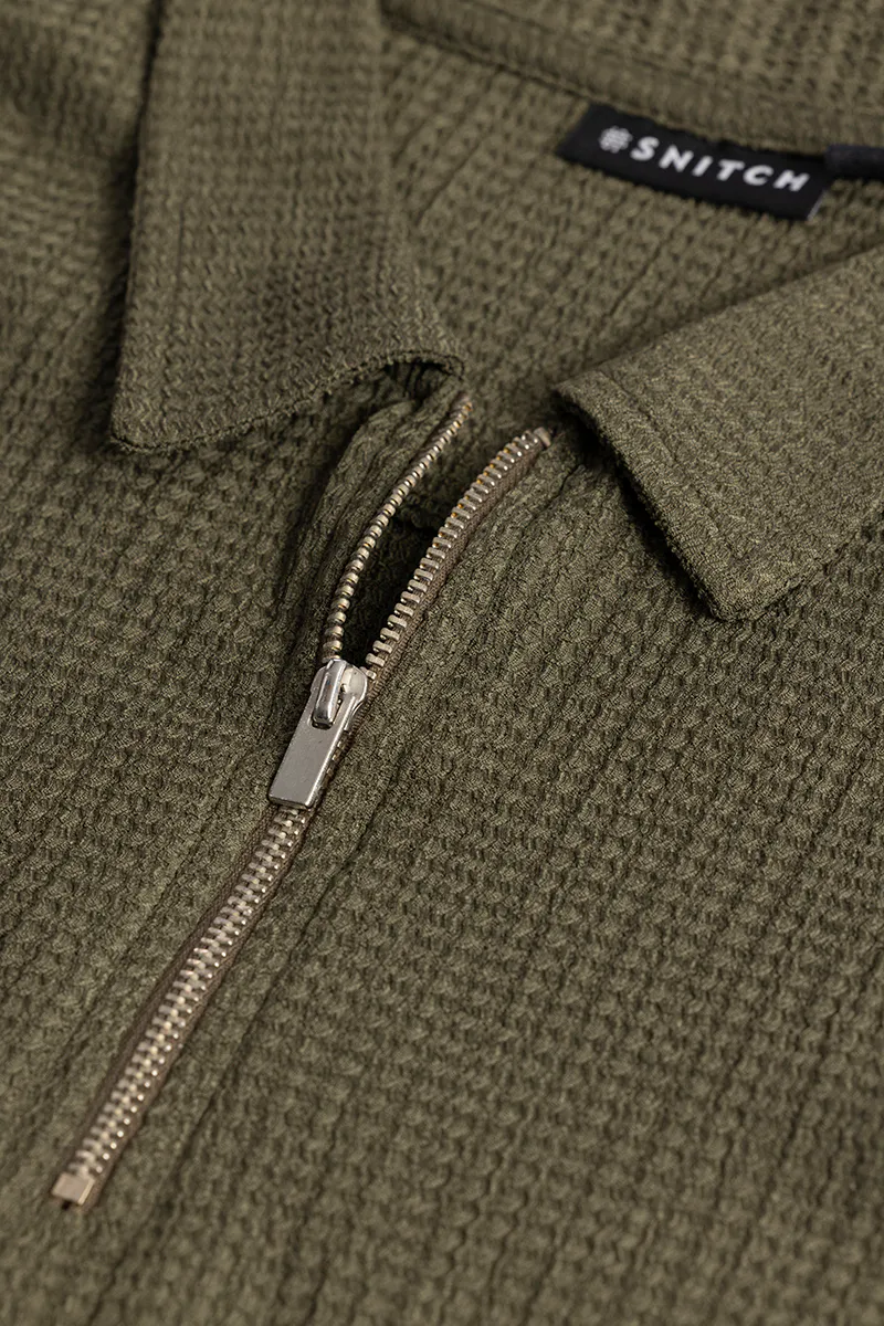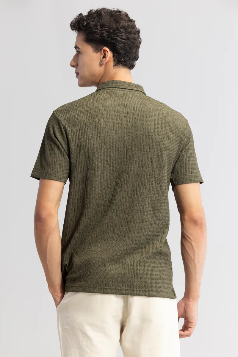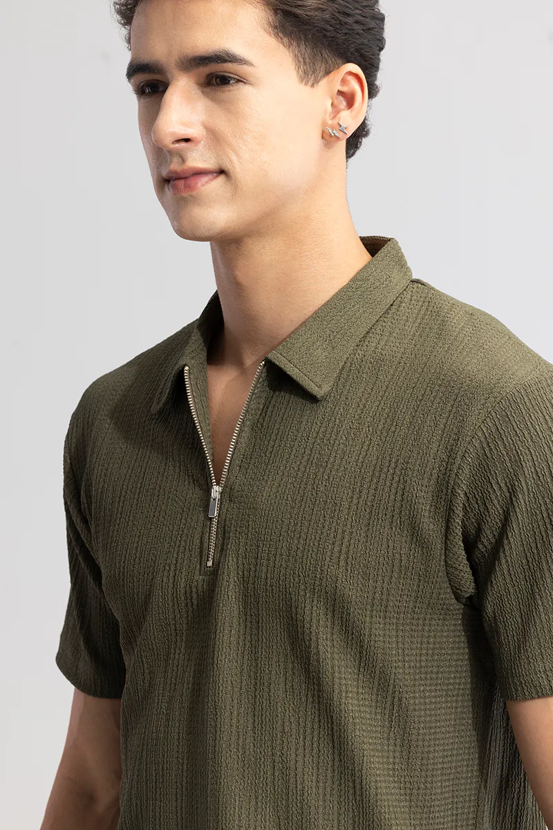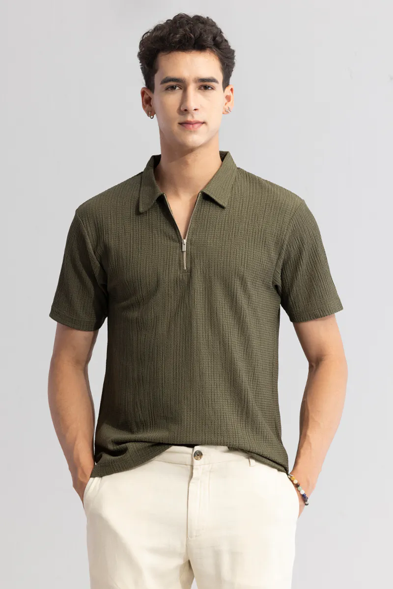 Olive Slim Fit Textured Polo T-Shirt for Men – Polyester Half Sleeve Casual Wear | India Store Mart