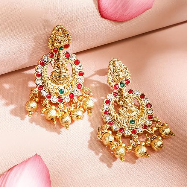 - 22K Gold-Plated Finish: Finished in radiant 22K gold plating, the necklace and matching earrings give an opulent look, mimicking real gold temple jewellery for a rich, cultural aesthetic.