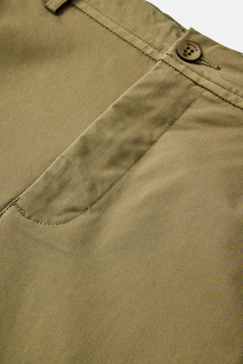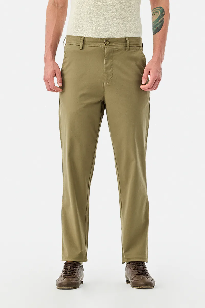 Khaki slim fit trousers crafted from a cotton blend for all-day comfort. Featuring a smooth texture, turned-up hem, and versatile design, these trousers are perfect for casual and office wear.