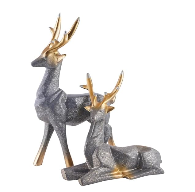 UAG Exports Home Decor, Set of 2 Deer Resin Showpieces – Stunning Hiran Statue for Living Room Decor, Ideal for Gifting, Table Decor, Office Desk Decorative Item (Grey) (8.5 Inch)