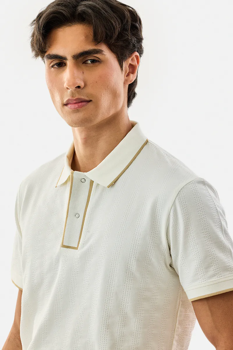 White Textured Polo T-Shirt for Men – 100% Cotton Regular Fit Casual Wear | India Store Mart